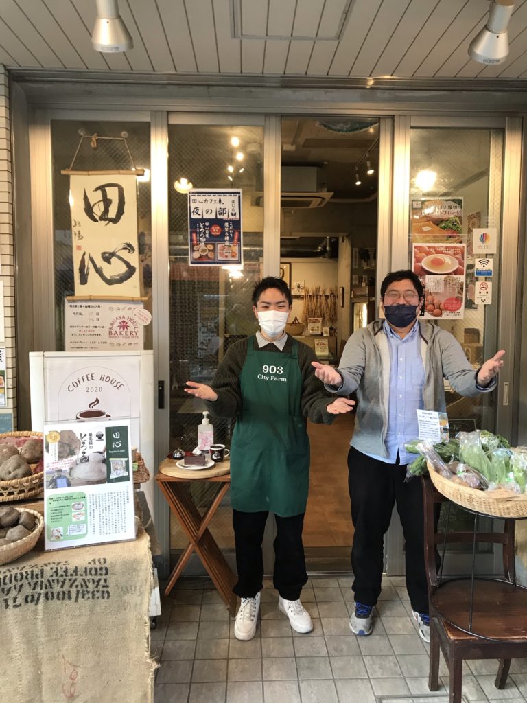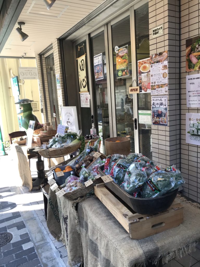 店頭に野菜を並べている浅草の小さなカフェ。一見、八百屋風に見えますが、カフェです。
