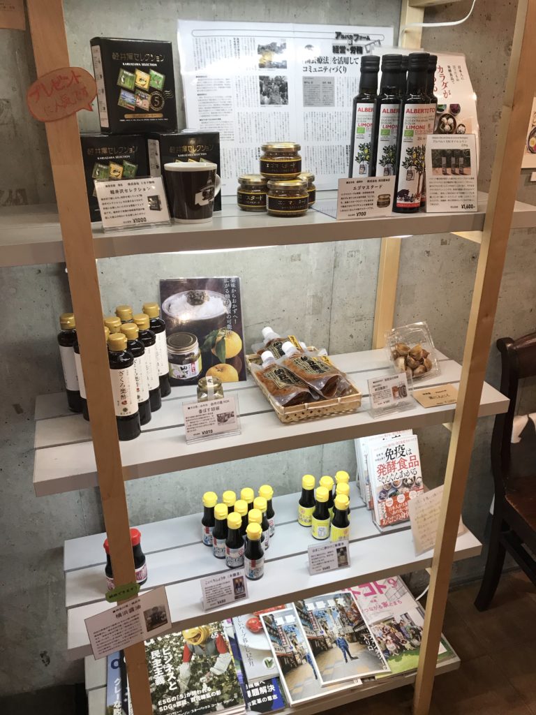 店内では、野菜だけでなく、キノコ、保存料着色料無添加の肉加工品や納豆、ドリンクなども扱っています。調味料などもあります。飲食以外で立ち寄って帰るお客さんも多かったです。
